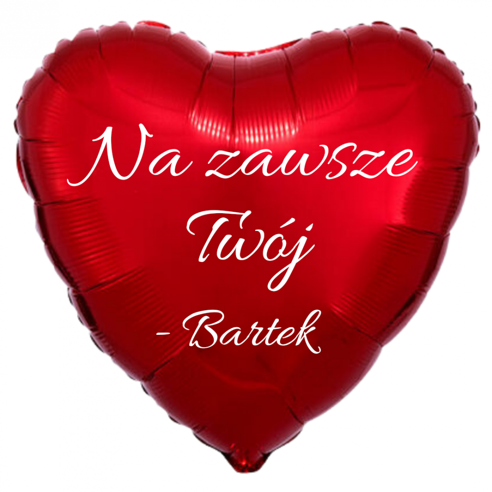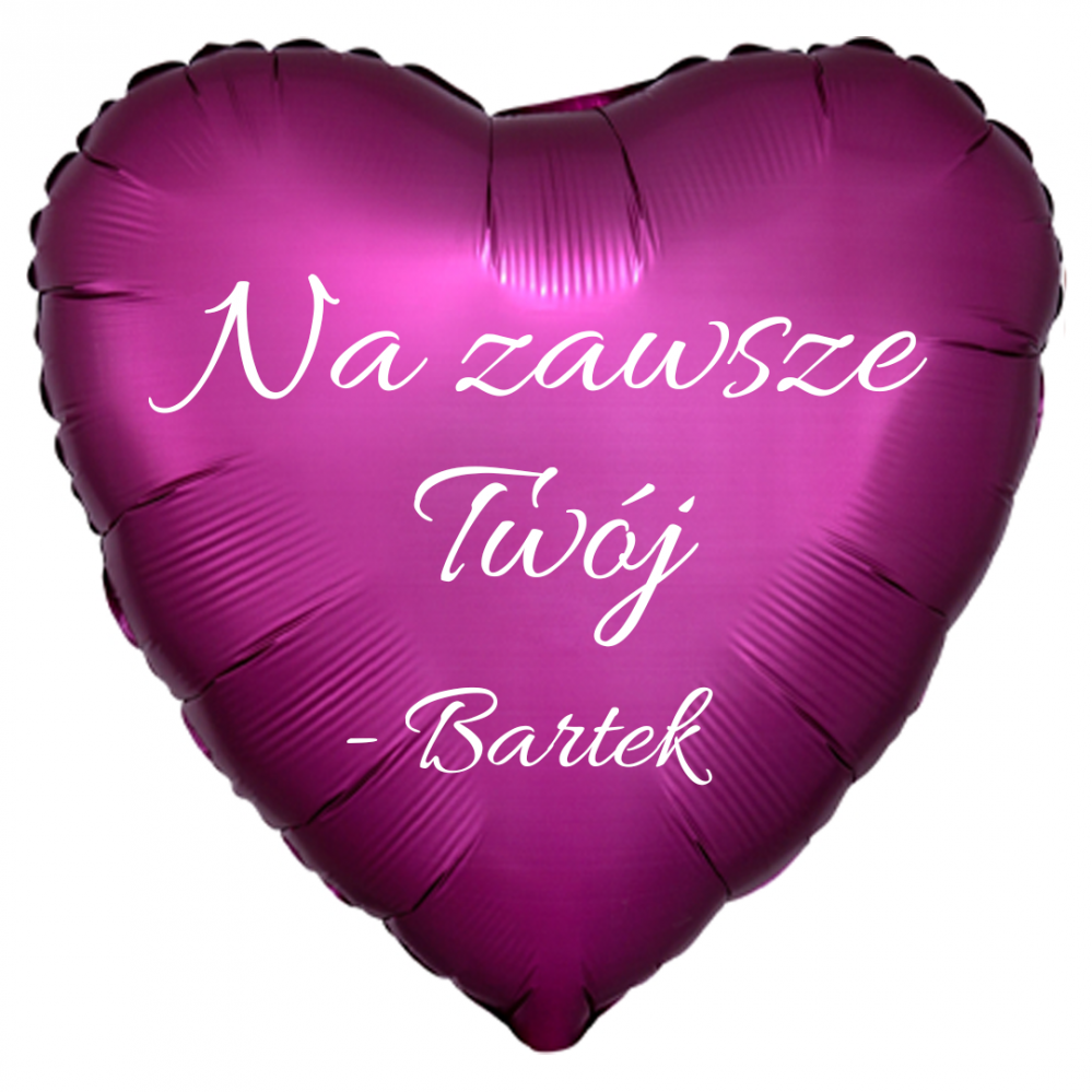 Balon w kształcie serca o wielkości 43 cm wraz z wstążką dobraną kolorystycznie.