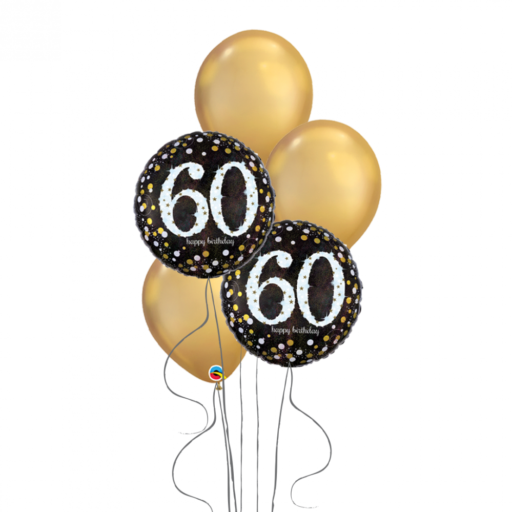 - 2x Balon foliowy "60 Happy Birthday"o średnicy 45 cm, wypełniony helem,