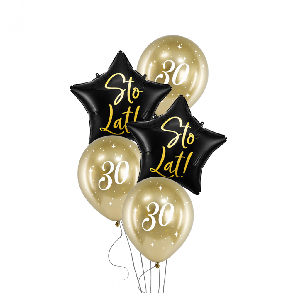 - 3 szt. Balon lateksowy wypełniony helem, z liczbą „30”